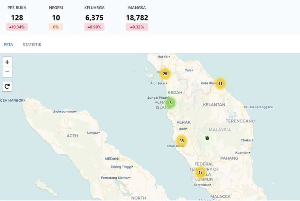 “Perlis pula mencatatkan seramai 1,324 mangsa daripada 439 keluarga. Sebanyak 13 PPS dibuka melibatkan tiga daerah iaitu Kangar, Padang Besar dan Arau,” jelas statistik info bencana itu.